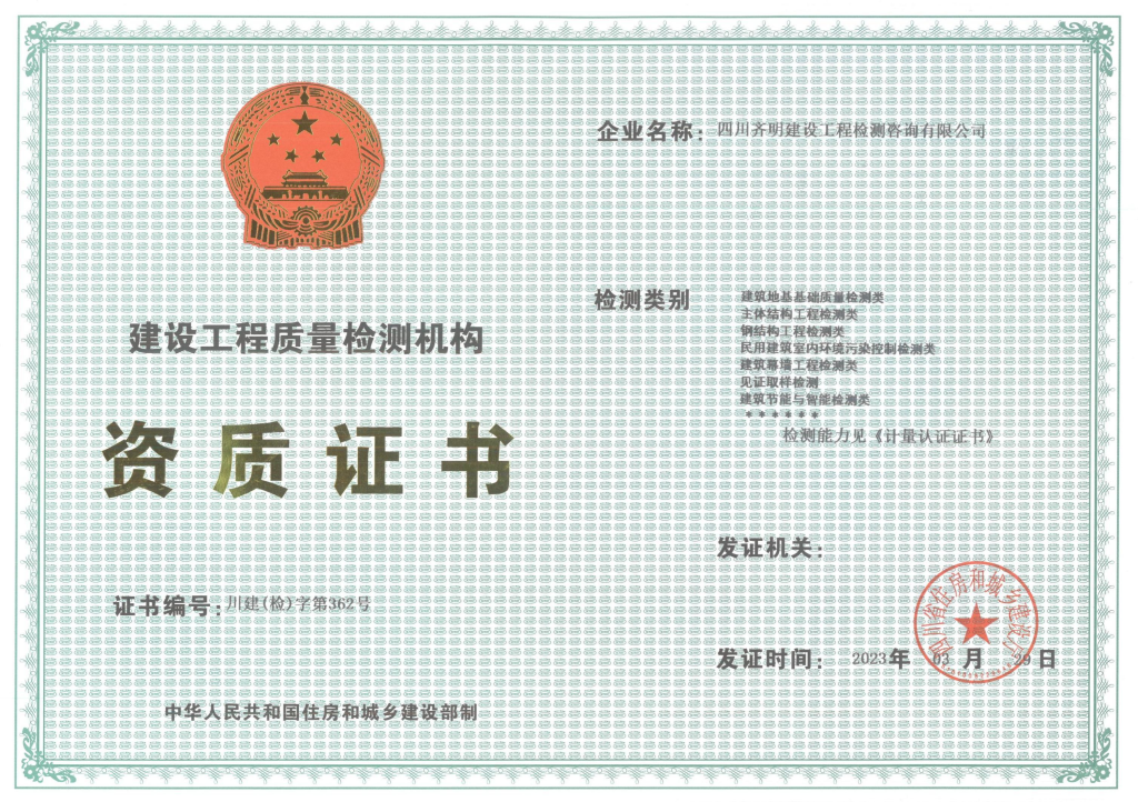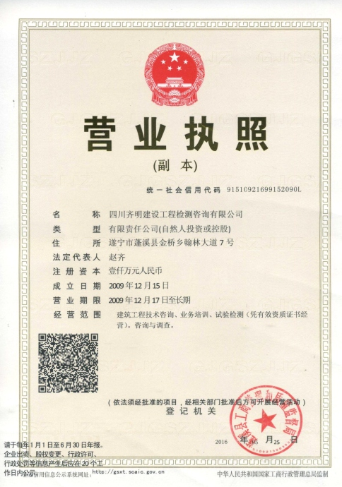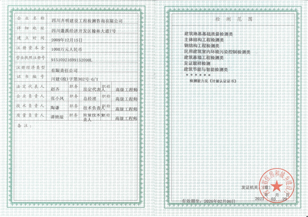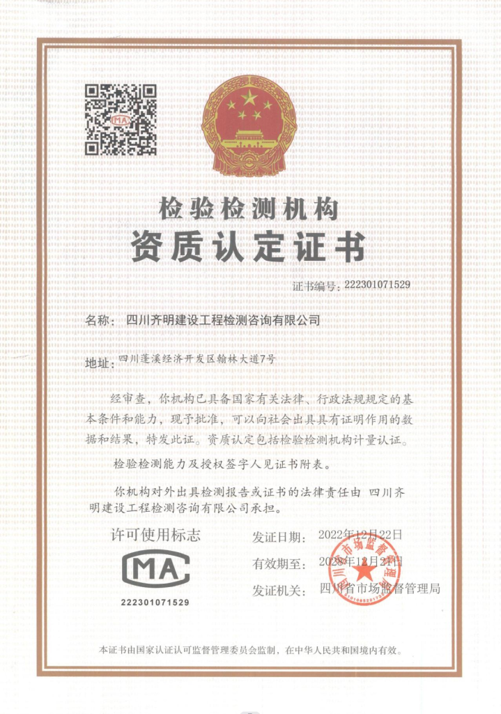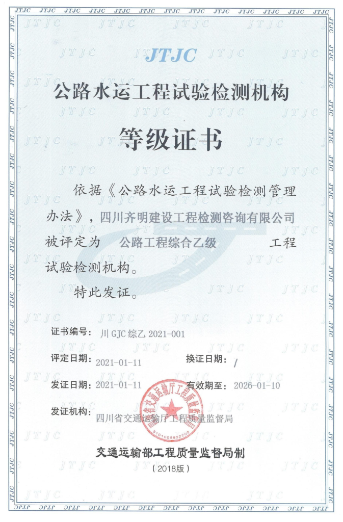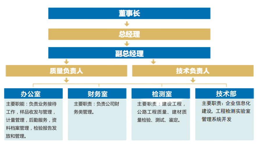 公司于2009年12月15日经遂宁市工商局批准设立并运行。公司现有员工86名,其中高级工程师职称10人,工程师职称25人,助理工程师45人,其它非试验专业人员6人。检测室面积达5000平方米,拥有918套先进检测设备,固定资产达6000万余元。下设董事长办公室、总经理办公室、总工程师办公室、行政办公室、后勤部、经营部、财务部、公路工程检测室、房建(市政)工程检测室,主要业务是房建范围的建筑地基基础质量、主体结构工程、建筑幕墙、见证取样、建筑节能与智能、工程材料、工程现场检测、建筑防雷、钢结构工程及材料、水电安装材料;公路水运工程综合乙级试验检测范围内的项目及参数、交通安全设施、交通公路工程、市政道路及市政桥隧工程、建筑桩基、建设工程原材料分析及项目中所涉及的所有试验检测工作。能及时准确地为工程质量监督提供科学、公正的检测依据,确保工程质量。